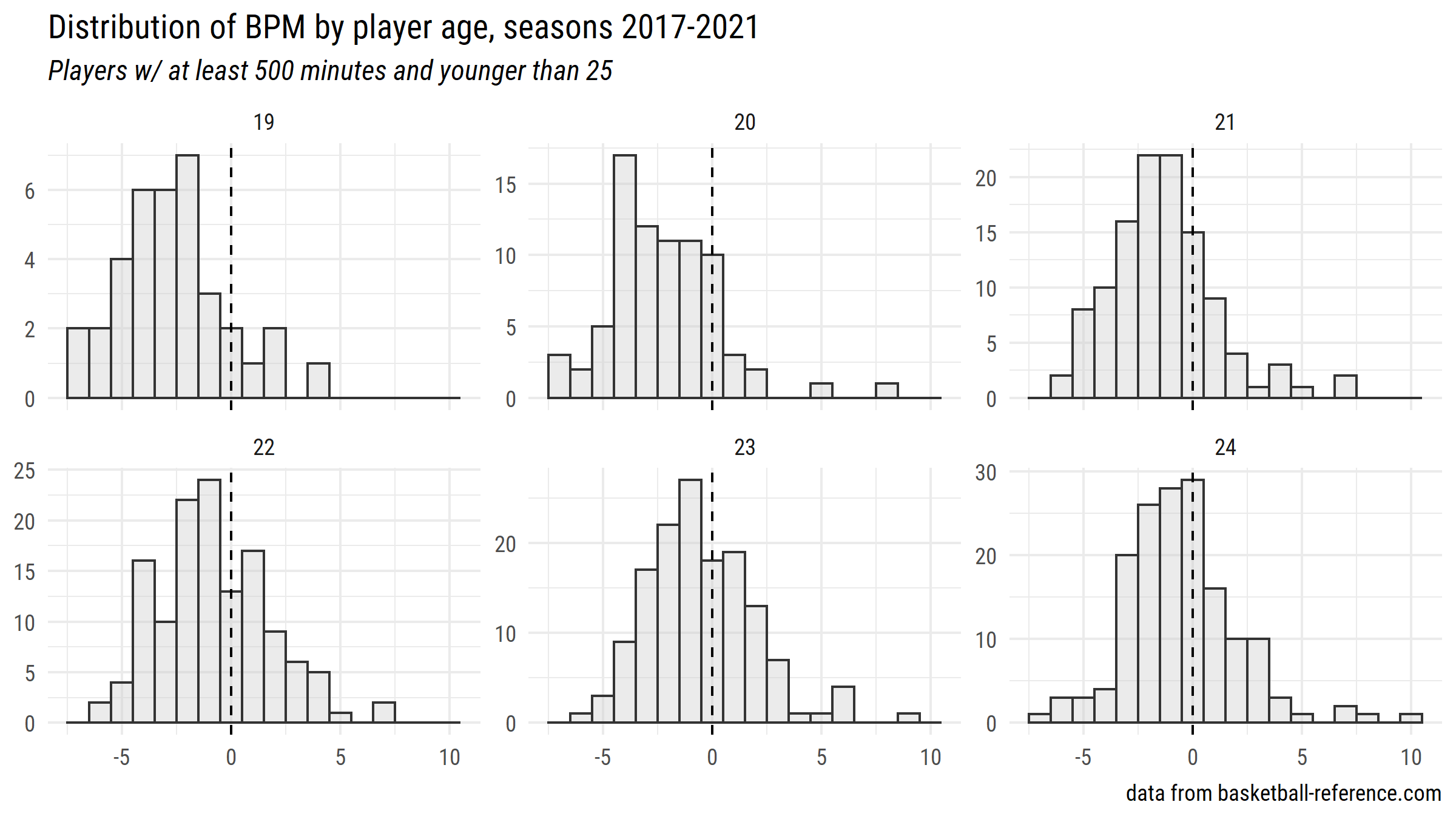 So, something like 1 in 10 guys that young and get any playing time at all are also ready to step in and be starters for NBA playoff teams.