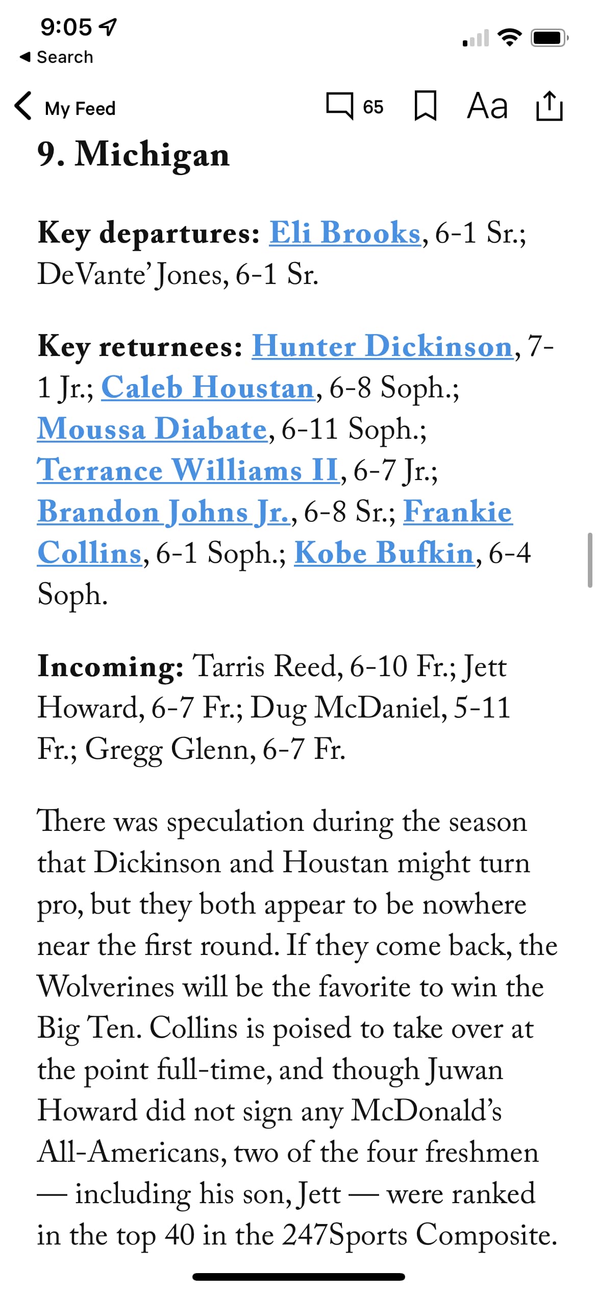 I might be alone in this but I honestly think the preseason stuff wasn’t that off, it just assumed Dickinson would be an obvious first team all american, which wasn’t that crazy based on his freshman year and that Caleb Houstan would be a fringe lottery pick type, which wasn’t that crazy based on all the buzz on him.