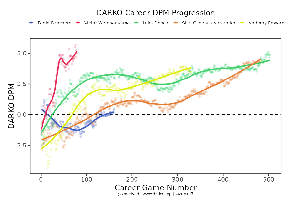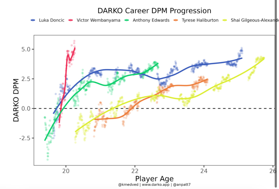 I thiiiiink the mode outcome rn is that in 4-5 years we’re like “ugh Wemby winning is so boring, we need somebody to knock him off his pedestal” bc he’s going to be just that good. When he’s healthy I think he’s gonna be able to drag otherwise average teams to 60 wins.
