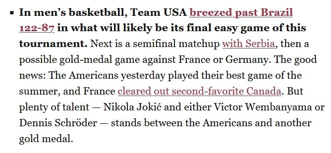 This is an excerpt from the daily newsletter I get from The Athletic. Bugs me a lot more than it should but there’s no way you mention freakin Dennis Schroder over Franz. I sincerely hope Germany kicks France’s butts tomorrow.