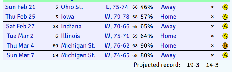 14-3 vs 15-5 isnāt that controversial imo. Illinois fans would have to argue weād lose 2 of 3 @PSU, @NW, and vs IU? Even if they beat us, I donāt think thatās much of an argument.