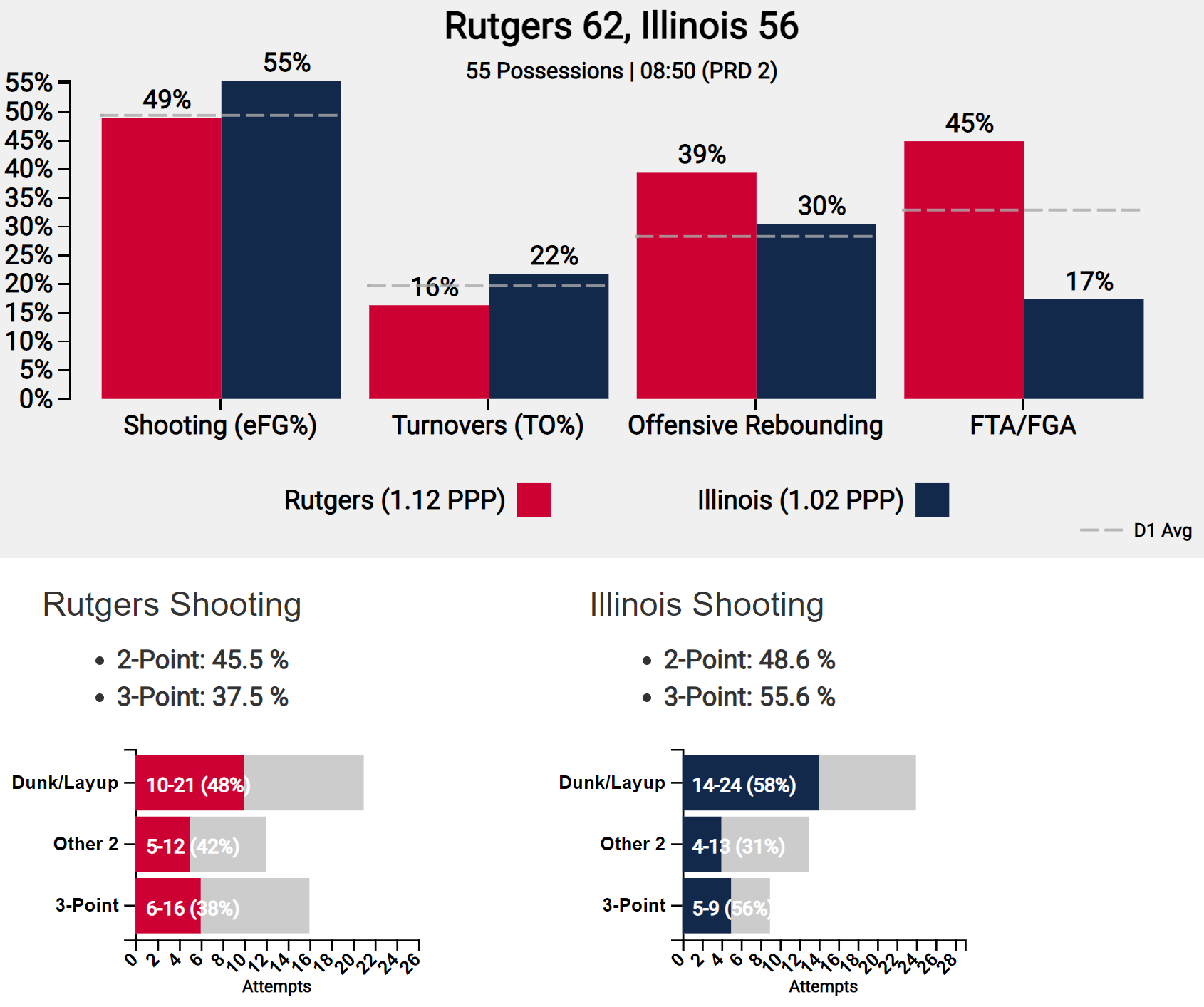 Rutgers playing harder than Illinois… Fouls have been an issue for Illinois a few times this year already. Bringing back some old school Underwood tendencies.