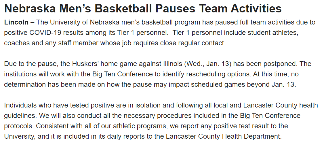 Interesting. Nebraska is a classic slump breaker. There goes any free games in conference play until they get better.