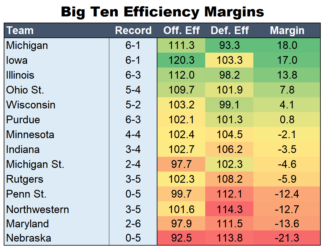 Would anyone have believed that Michigan has the best defense in conference play by almost 5 points at the start of the season?