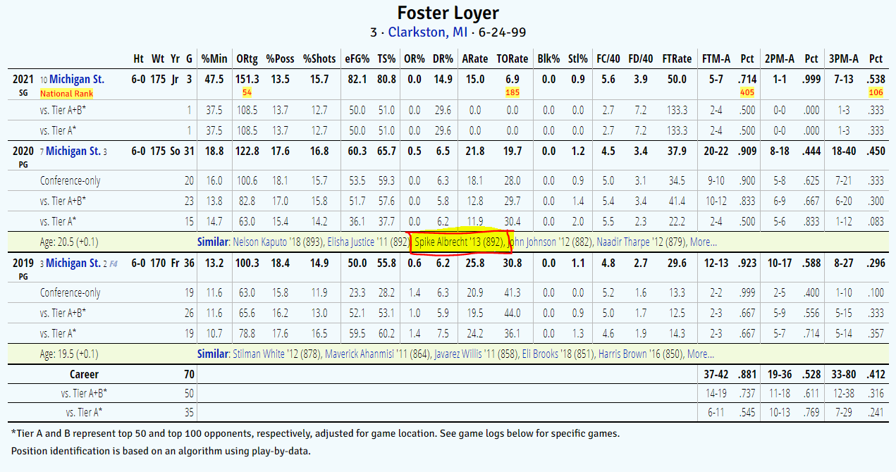 The Spike/Loyer comparison is so stereotypical that it is painful, and I agree they are different players, but Spike was definitely a good shooter. He was 79-of-195 – 41% in his career at Michigan.