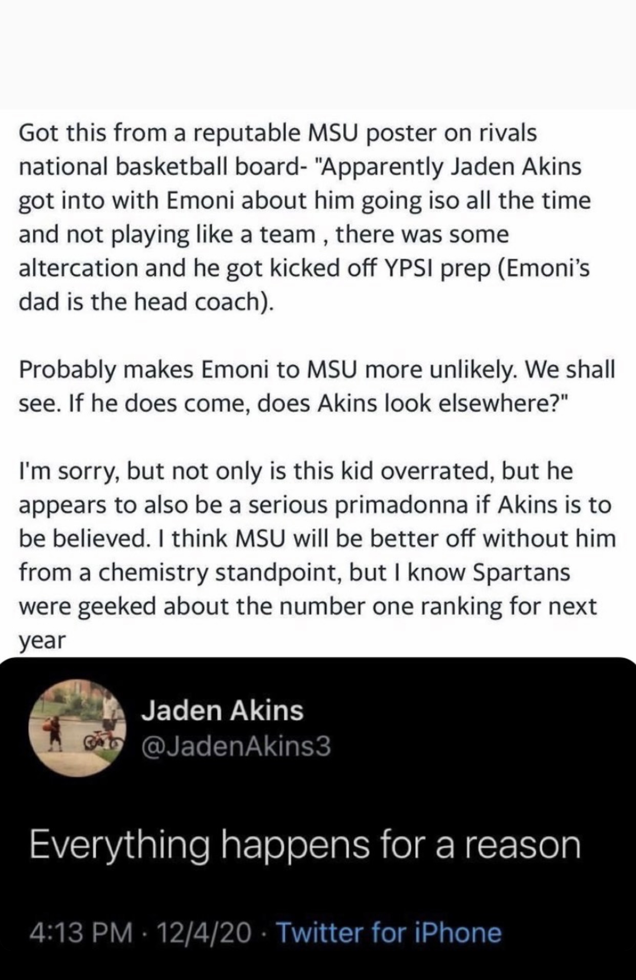 I agree, you can’t turn down a commitment from Bates but MSU is arguably better off with Akins alone. It’s possible this is the best-case scenario for the program, they can separate from Bates without losing face