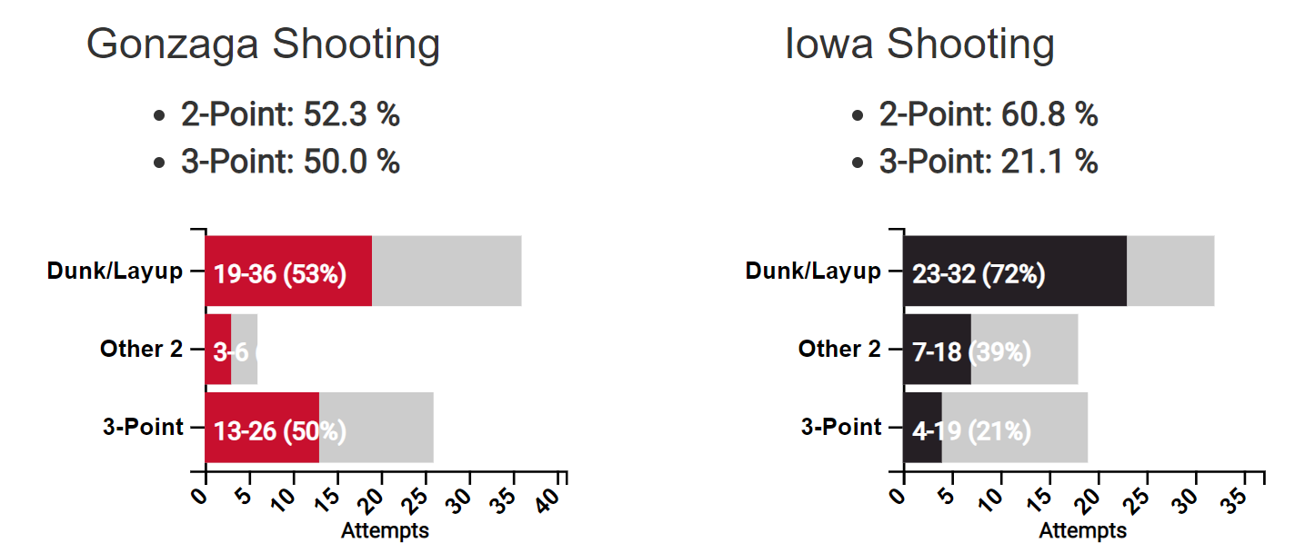 Iowa is lucky Gonzaga didn’t shoot 70%+ from two tbh. Zags missed a lot of uncontested looks at the rim.
