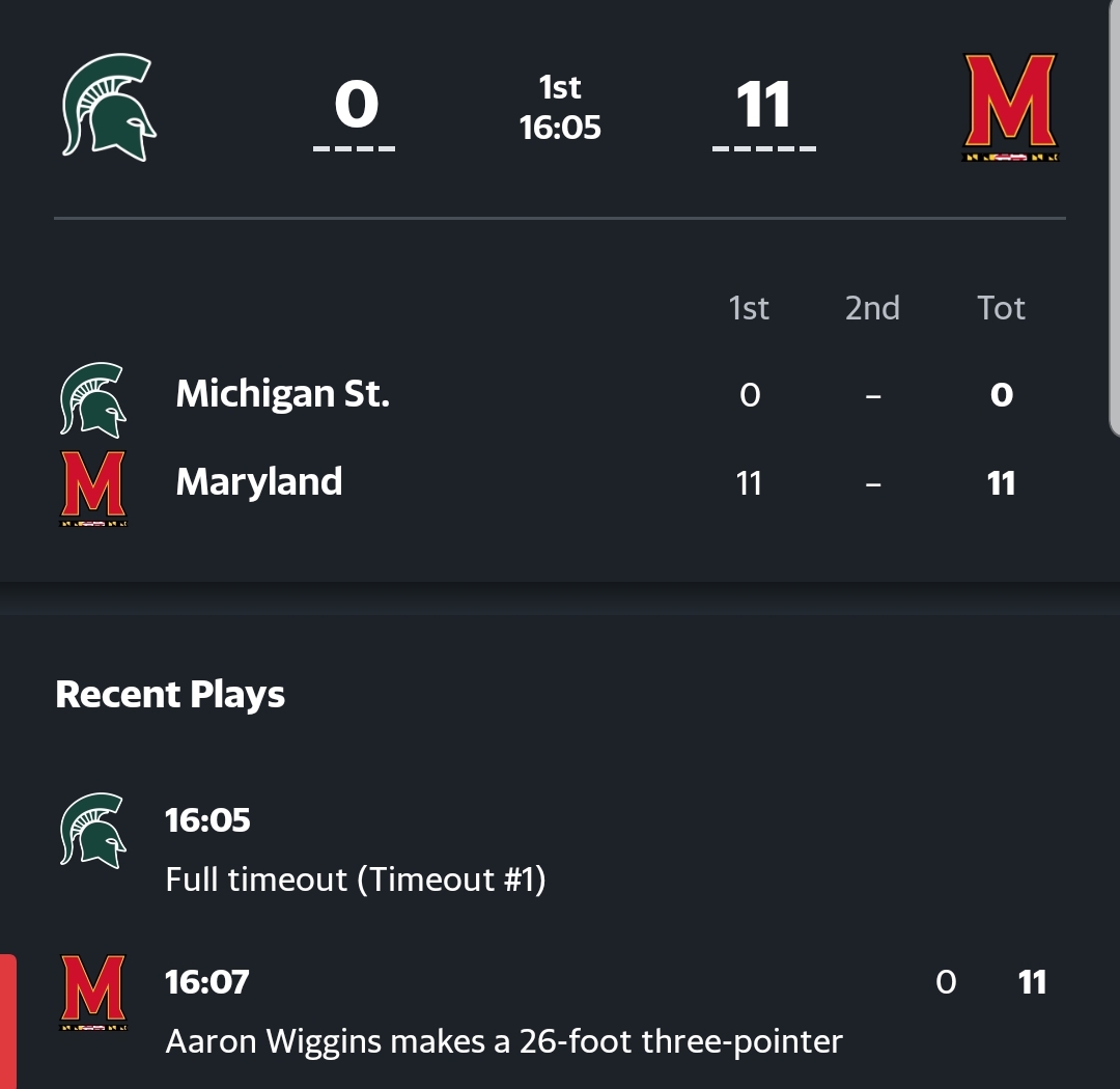 Good start Maryland! You already made Izzo scream and humiliate a player on national TV!
