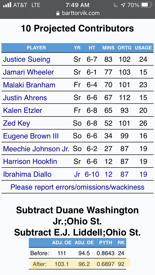 For people curious, which I think is most of us, Torvik has Wisconsin 71st right now with no seniors back. Adding Davison gets them to⌠59th. It only makes their projected DEff better, not OEff