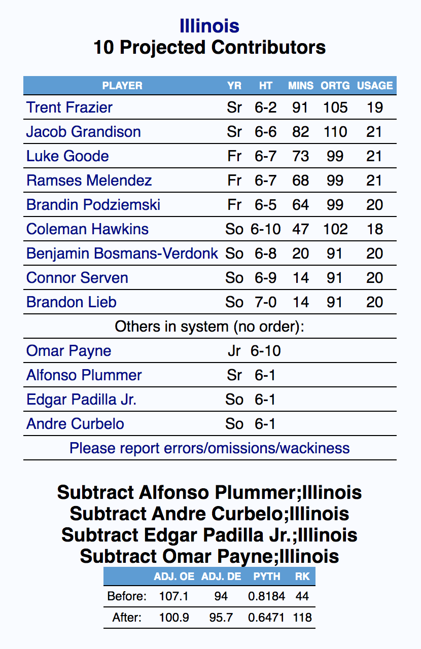 So basically to sum up water finds it level and Illinois back to the bottom/middle of the pack of the Big Ten. In all seriousness I am very intrigued on how Illinois can build/maintain the success of this one season after not making the tourney in a while