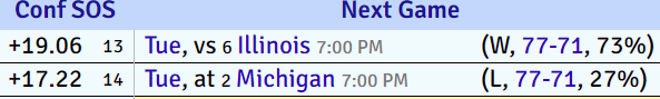 The gap between Michigan and Illinois (1.84) is nearly the same as the gap between Michigan and #5 Maryland (2.11).