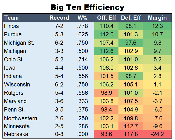 I’m surprised MSU has the #1 most difficult remaining schedule with only one game against Purdue (at home), one game against OSU and the games at Wisconsin and Illinois already out of the way. But I guess not playing Nebraska, Northwestern or Minnesota again carries a lot of weight. No nights off so to speak