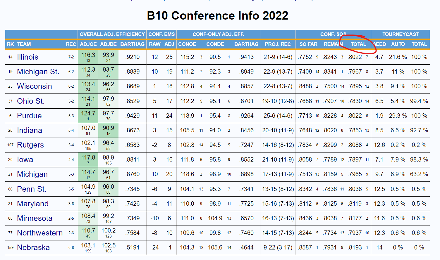 Yep – Wisconsin has played a really tough schedule which is part of that but still interesting to see those numbers.