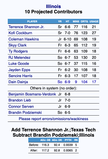 Shannon + Kofi + 5 star guard + Hawkins is the best team in the conference by a lot, barring Michigan miraculously surrounding Hunter Dickinson with three knockdown shooters who currently don’t exist.