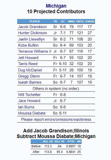 The difference is that Illinois’ best returning player is Coleman Hawkins and Michigan’s best returning player is Hunter Dickinson.