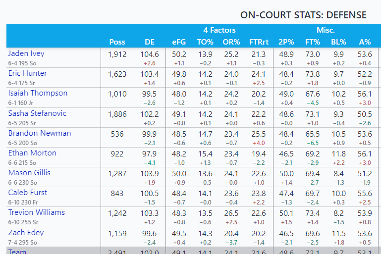 What I am impressed with Purdue and Painter is that they were pretty terrible defensively last year . Yes it’s still early but they have come back and currently have a top 30 D. I just find it interesting because they have replaced Ivey/Williams/Stefanovic/Hunter/Thompson with