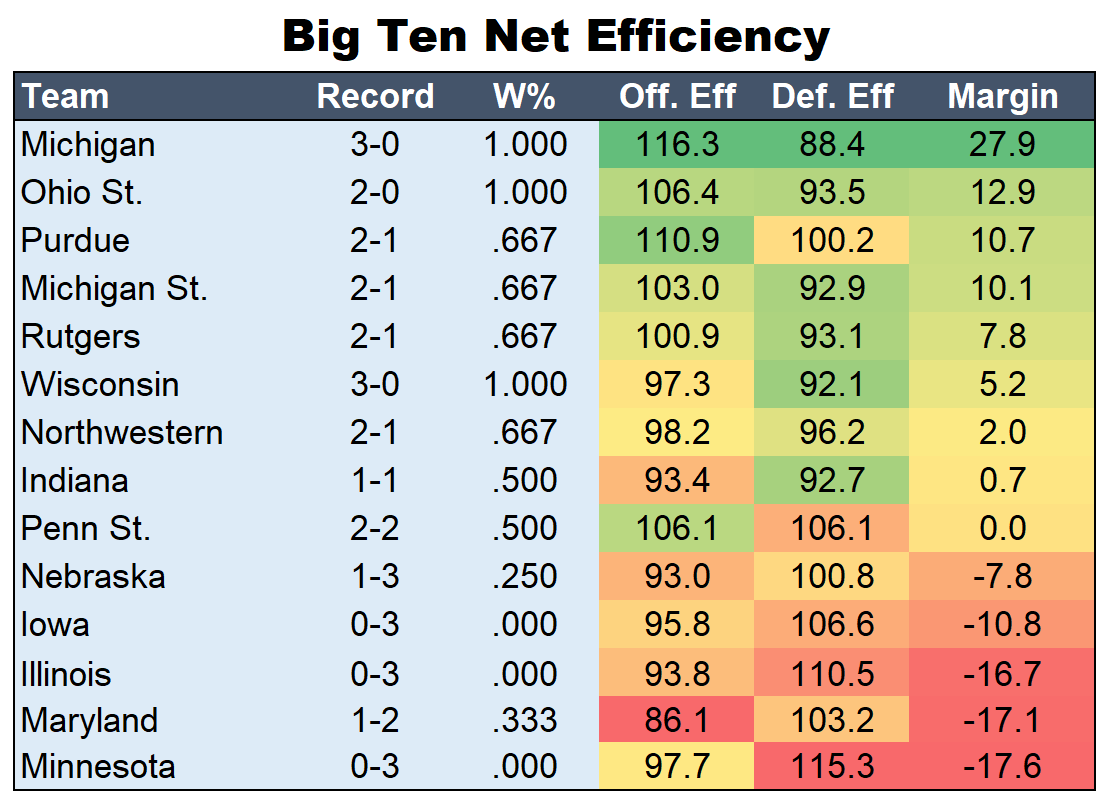 Wayyyyyyyyy too early for this but speaks to how dominant Michigan has been in its three wins. And also that it hasnât played any good teams in the league ![]()