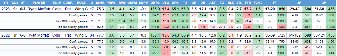 Based on nothing but offensive statistical profile, Michigan needs to recruit Ryan Moffatt to take his COVID year at Michigan next season and be a C&S monster.