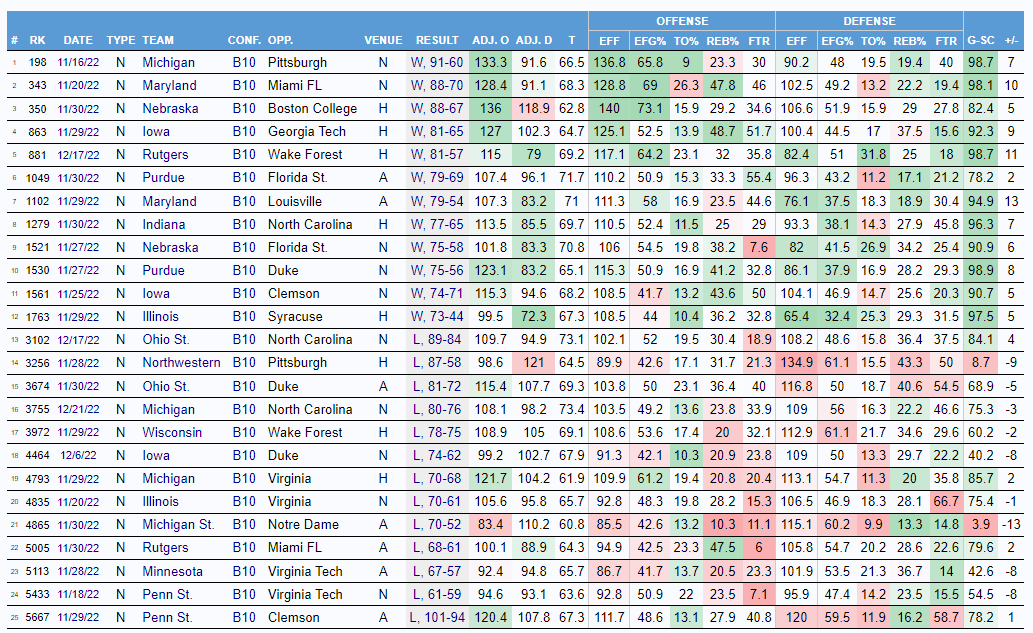 Adding Kris Murray (and losing Pat McCaffery) and going from being 9 points worse at home than KP #350 to immediately being above three of the supposedly respectable middle of the pack Big Ten teams says something about that special middle of the pack that makes this conference so great