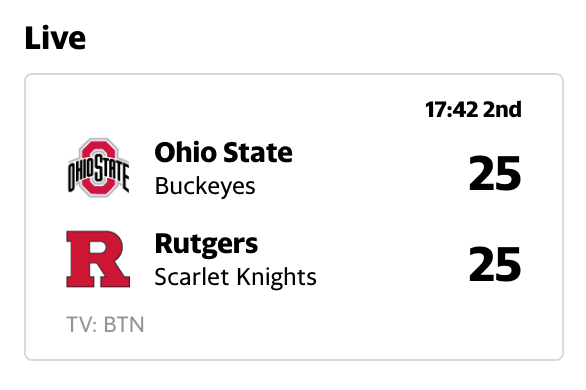 Did you see the BTN scoreboard guy go insane for a minute there? Rutgers scored and they kept adding points to OSU before finally dropping the graphic from the screen for a minute.