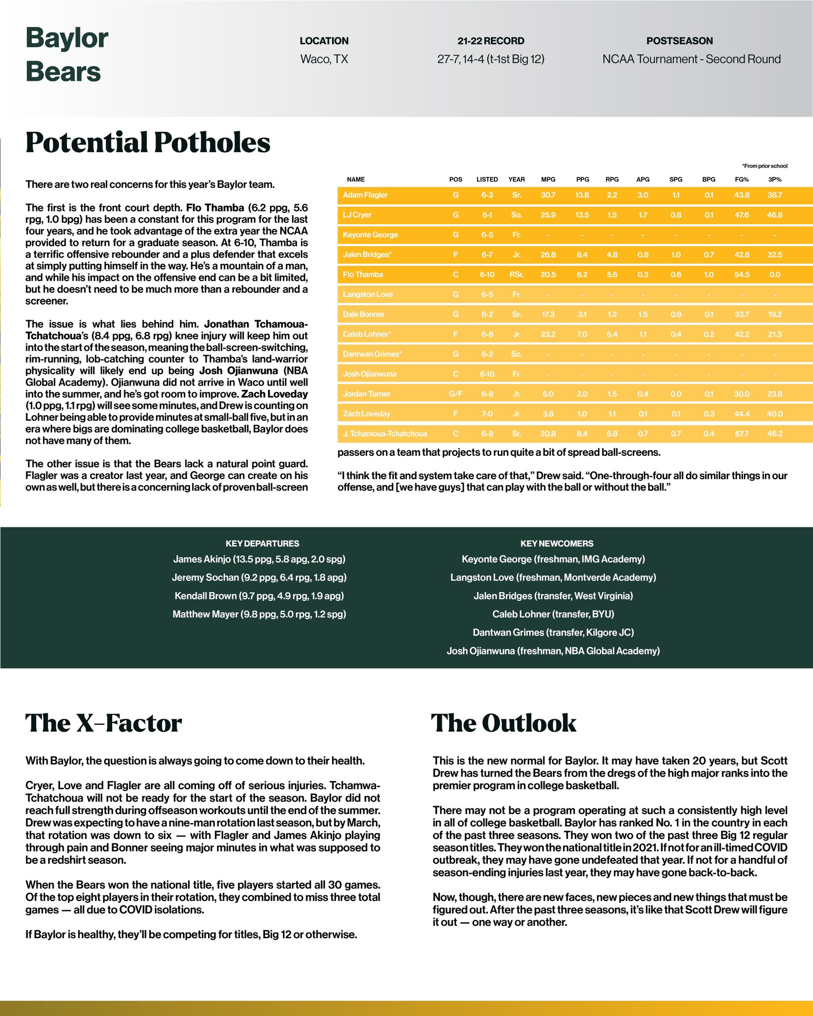 Example of what the team pages will look like. Every coach in the country was interviewed for the project. Also will include some more nationally framed sections on the front end. More Athlon-y than 3MW’s normal previews for sure but should still be super informative.