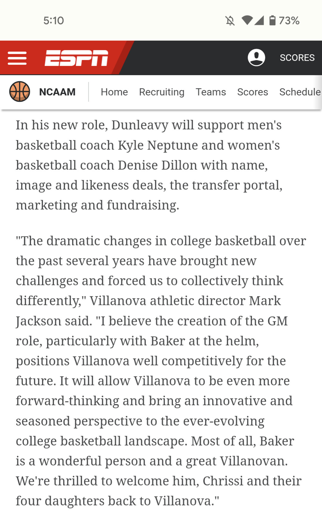 Didn’t Villanova bring Baker Dunleavy back more or less solely to whip up NIL donations? There’s a lot of money on the Main Line.