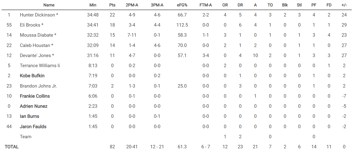 Honestly? Why not? Heâs at 40% on 25 shots. Thatâs not a lot of sample size but it also isnât a % boosted by one outlier game. He went 3-for-5 against Maryland but the rest of his are built on just a couple shots per game. I think given the importance of Edey having to guard him and the struggles Hunter is likely to have with posting upâŚwhy not?
