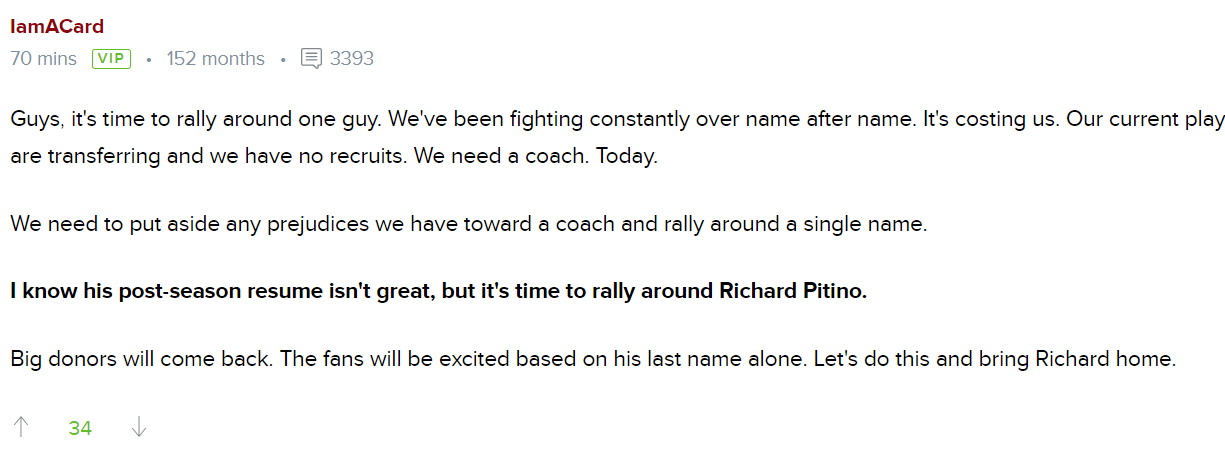 Also if you’re really talking yourself into Lil Pitino just stop dancing around and rehire Rick. Or hire the actual young version of Rick in Will Wade.