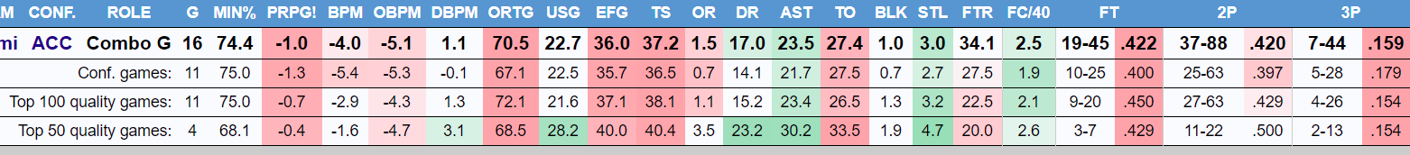 There is a lot that jumps out here and none of it is good. 42% from the foul line??? 16% from 3?