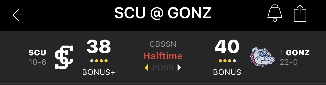ESPN guys falling all over themselves to pump up Santa Clara as a legit opponent. Gonzaga will be undefeated going into the NCAA Tournament but they’ve played two meaningful games of basketball (BYU x2) in the past two months.
