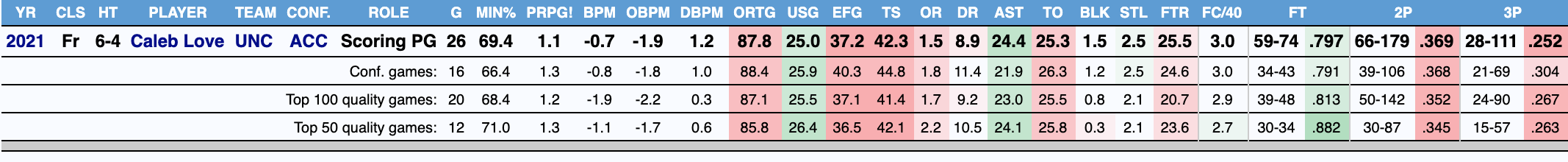 Love is literally one of the worst offensive starters possible. The amount of usage they allow him to have while being so bad is preposterous. UNC basically plays volleyball.