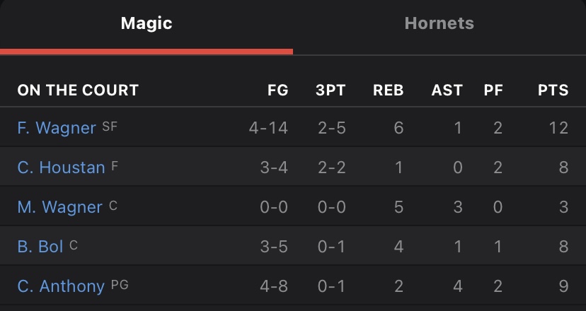 Moritz Wagnerās minutes remain a bit reduced with the return of Jonathan Isaac (though youād imagine the Mo Bamba trade will likely bring them back up - which by the way, congratulations to Mo (Wagner) for winning the backup battle vs. a lottery pick!) but heās producing in his minutes. He scored 81 points in the 8 games. He continues to foul quite a bit obviously, but his strengths - scoring at the rim, making free throws, offensive rebounds (1 per game in 17 minutes is solid) continue to be apparent. I remarked earlier, but when Mo arrived in Orlando, his career was teetering on the edge - he had been cut by 3 franchises in slightly more than 2 seasons. Heās really found his footing in Orlando.
