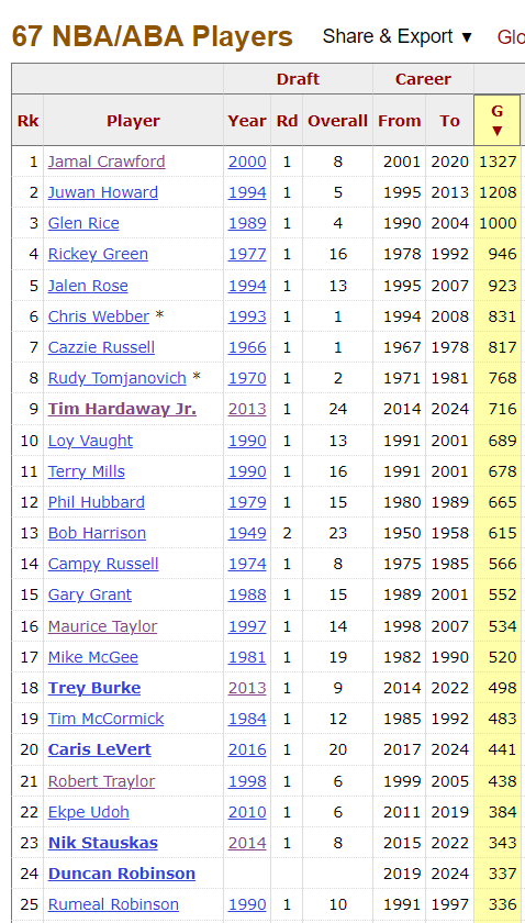 Semi-related, hereâs the top 25 career NBA games by UM attendees. Not a suuuuper impressive list.