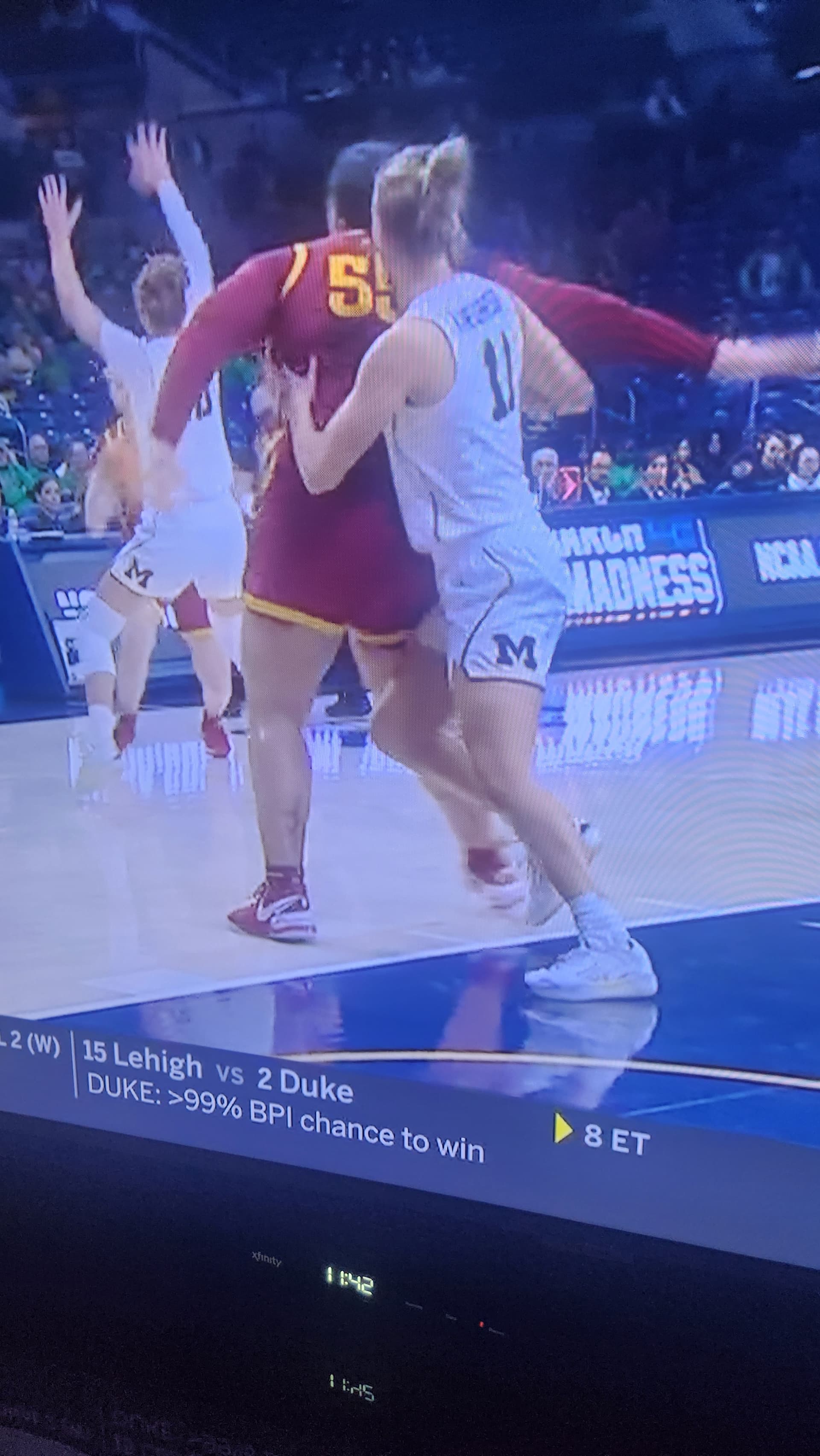 Started a few minutes late here so I’m catching up, but I think Michigan’s answer here is to just run run run, right? Tire her out quickly by running the floor. No way she can keep up with the athleticism of Michigan’s guards if they get on the run, right?