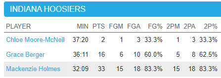 In case you’re curious, that number is 70.9% on the season as a whole. Going to be a real tall order for the Kiser/Williams/Evans trio (to say nothing of the fact that someone has to guard Grace Berger and it almost certainly won’t be Laila).
