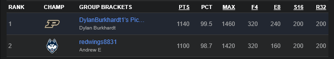 Ya been watching. Have three other 99% brackets with Purdue, UConn and Bama each if I could only add to our bracket!! ![]()